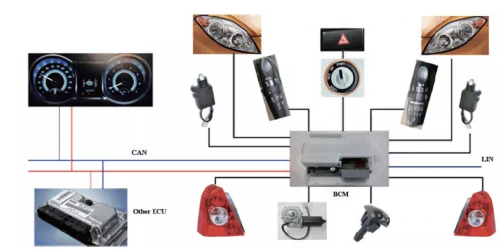 CAN网络在早期的整车应用中以BCM(车身控制器)为控制中心,