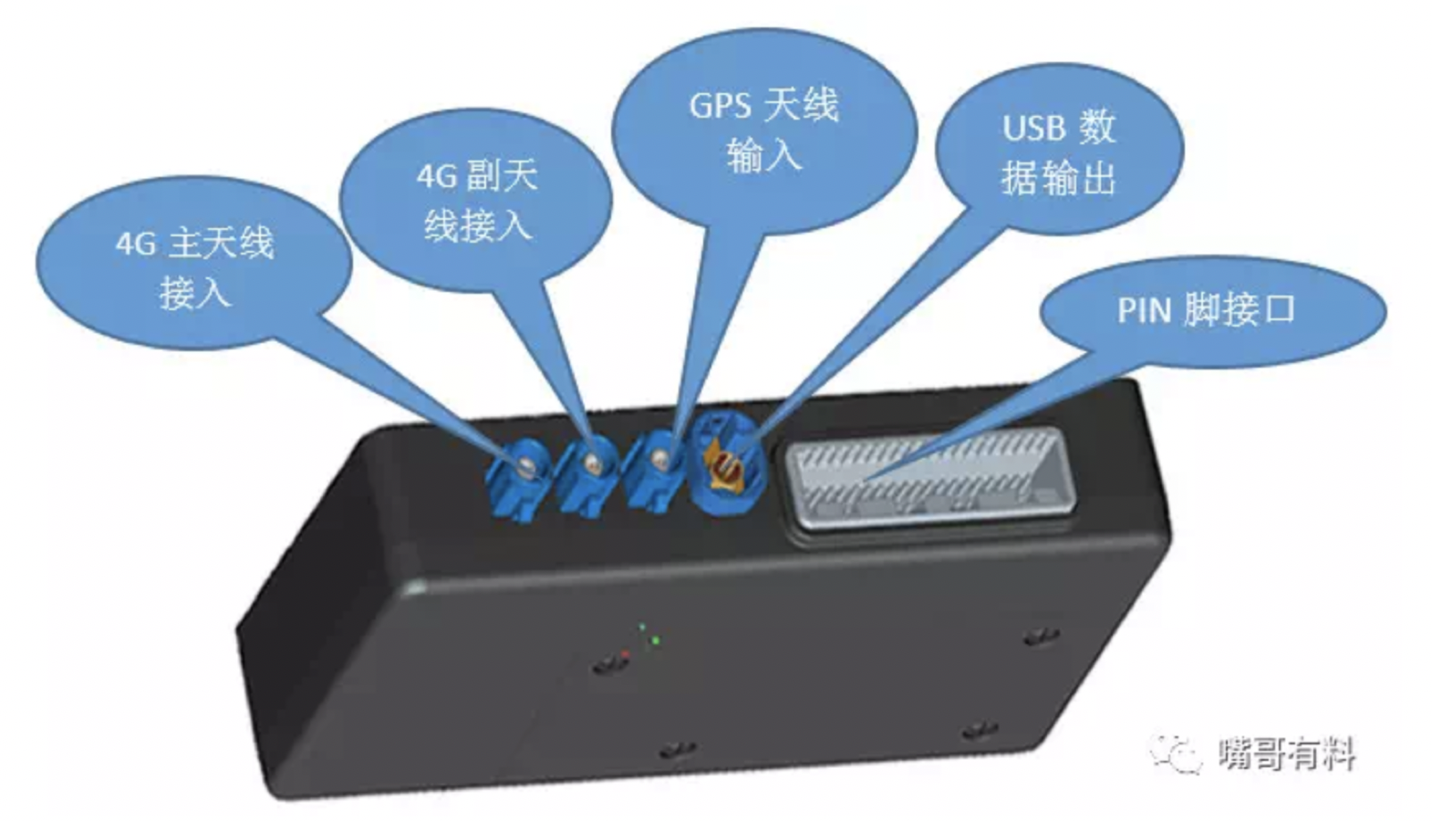 内含一张SIM卡,一般是中国联通SIM卡,与这个盒子配套硬件还有GPS天线,4G天线等。